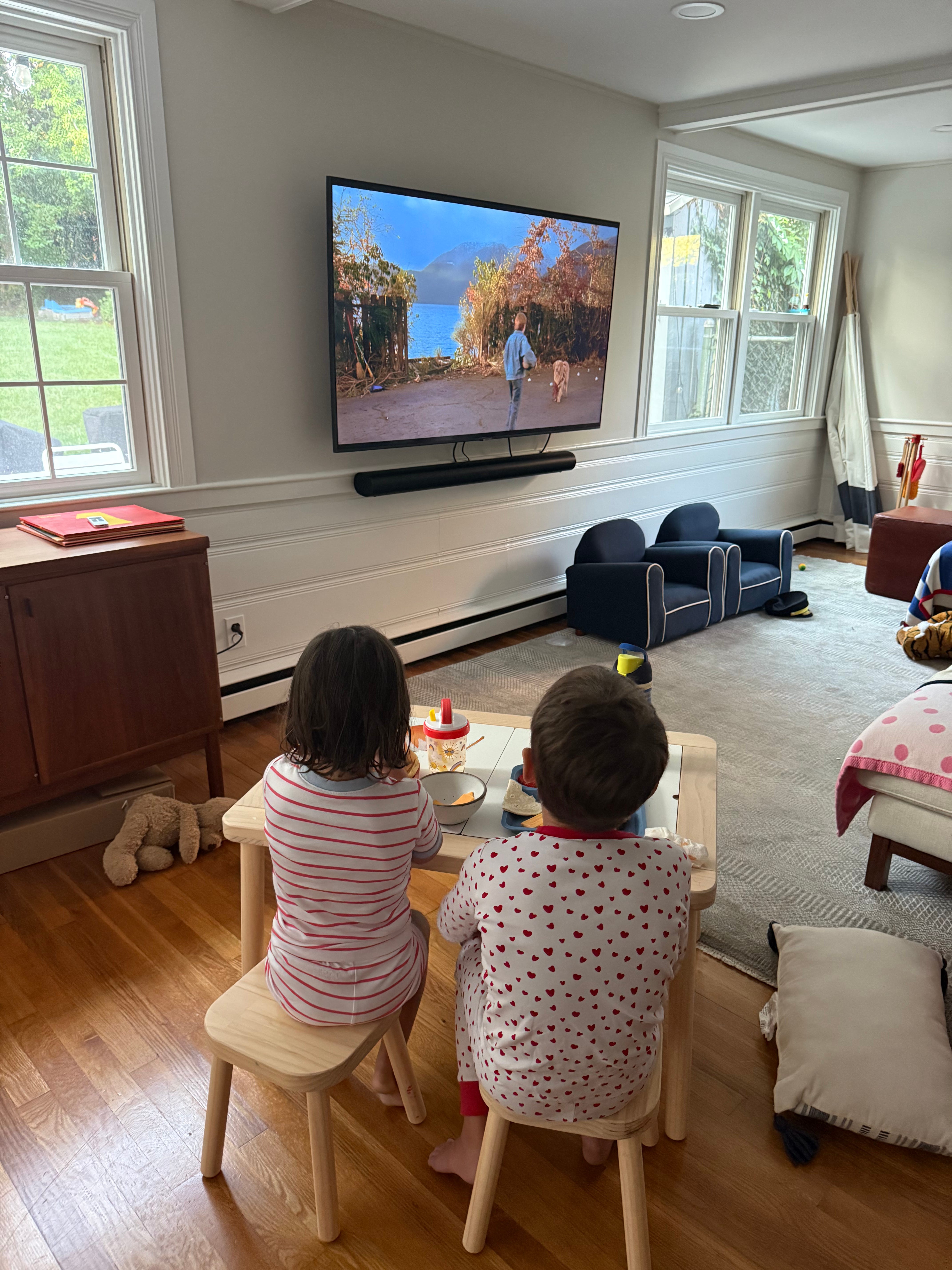 So this Monday, a day when my kids are usually tanked from school/camp/life, I set up a little TV dinner in the family room and we watched Air Bud. I should add, that this was a huge novelty. Our kids never eat while watching TV, and as expected they did not eat well/eat much. I don’t know if we’ll do the dinner portion of this set up again, but you live you learn, eh?