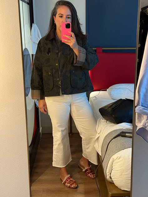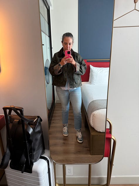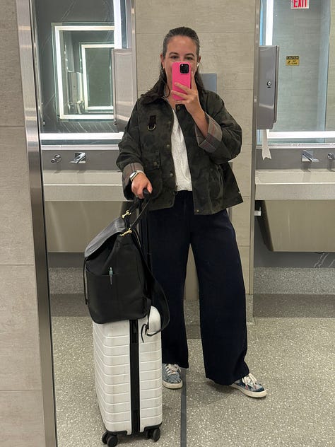 The thing I wore with all of it, my new Barbour x Tuckernuck jacket. I ordered it the second it dropped, and when it arrived it was an immediate f*ck yes. Did I need another jacket? Absolutely not. But some things are just meant to be. I’ve had some of my Barbours since high school, and this one felt like a fun play on a forever piece. The best part: I got so many compliments on it, thank you to the woman who stopped me as I was boarding my (very) delayed flight.