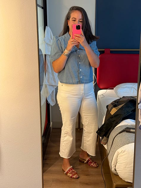 I wouldn’t call myself stylish, but something about being in New York City makes me want to be. On the streets you’ll see everything from power suits to costumes and no one blinks. My usual WFH suburban-mom fits feel out of place.